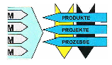 von Produkten, Projekten, Prozessen im Zusammenhang mit Menschen, Maschinen, Material, Methoden.